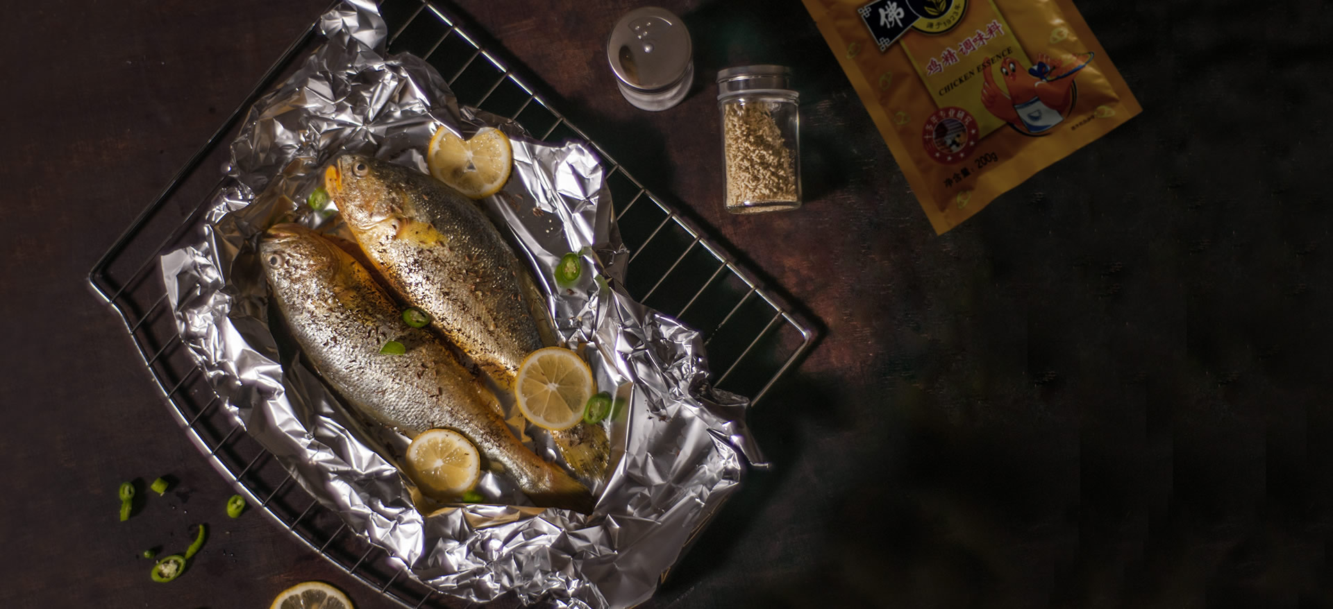 烤出來的魚肉質細嫩,再加上一勺蔥油和胡椒提味